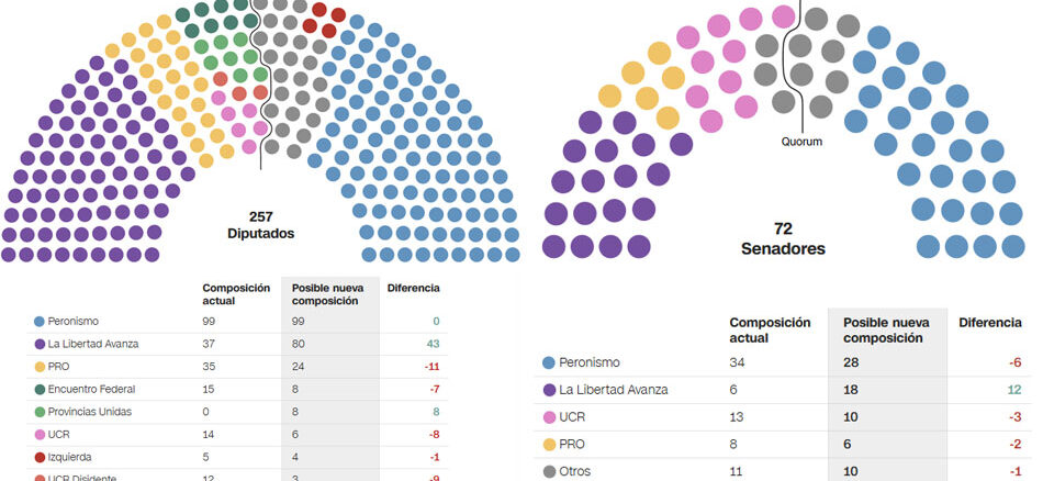 En las elecciones legislativas del domingo, la LLA logró largamente la meta de alcanzar junto a sus aliados del PRO los 86 diputados, un tercio […]