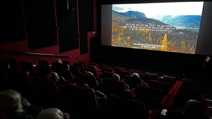 Durante la proyección en Malvinas, el público pudo escuchar también una breve presentación del realizador sobre el contexto en el que se produjo el documental y la dimensión del incendio que devastó parte de Chubut.