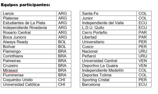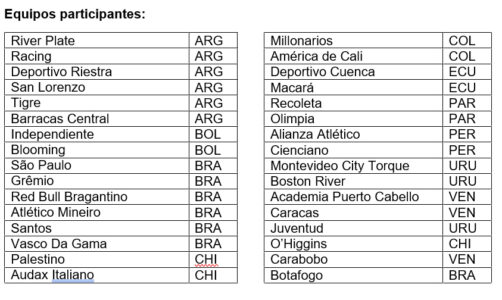 c) La tercera línea estará compuesta por los 8 equipos subsecuentes del Ranking de Clubes de la CONMEBOL al 15 de diciembre de 2025.