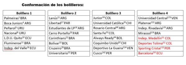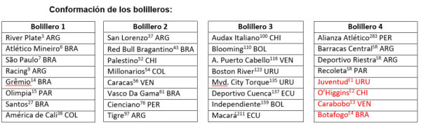 La definición de los bolilleros para el sorteo a ser realizado por la CONMEBOL seguirá los siguientes criterios: