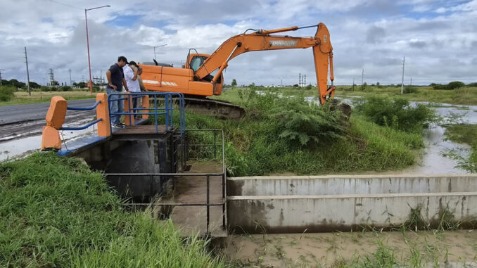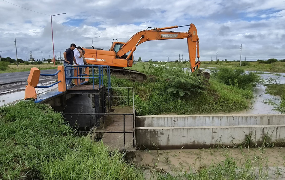 El trabajo fue cerrar la compuerta y además para asegurar, bloquear con terraplén, el ingreso del agua que viene de un sector habitacional pero principalmente de la zona de campos que baja masivamente en las últimas horas ya que hubo mucha lluvia hacia la línea del interior.