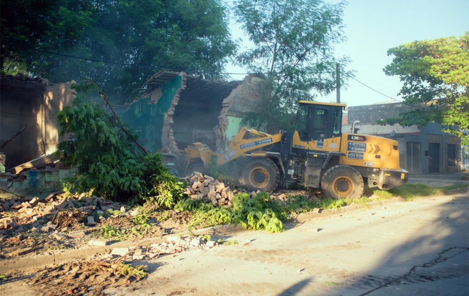 Tras haber llegado a un acuerdo, el municipio intervino e hizo el trabajo de demolición y retiro de los escombros, el Intendente Ariel Caniza estuvo en el lugar verificando dichas tareas, al mismo tiempo en que recibió el agradecimiento de vecinos por haber logrado esto que les dará mayor tranquilidad y seguridad.