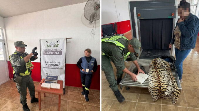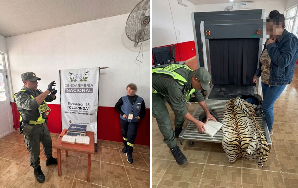 Al momento de solicitar la documentación a una ciudadana de nacionalidad paraguaya, los efectivos percibieron cierto estado de nerviosismo y contradicciones en sus respuestas, lo que motivó a un control más exhaustivo en su equipaje de mano. Mediante el uso del equipo de escáner de la Fuerza instalado en el puesto de control “Gendarme Fermín Rolón”, confirmó las sospechas de los uniformados al mostrar en las pantallas elementos rectangulares dentro del bolso.