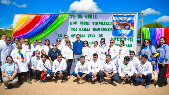 En la mañana de este domingo 19, el vicegobernador Eber Solís compartió el acto conmemorativo por el Día de los Pueblos Originarios en la EPEP N° 421 Wichí Lako (EIB), en el barrio Simbolar de Laguna Yema.