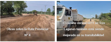 Por otro lado, desde el Distrito Norte de la DPV se está poniendo en condiciones el camino vecinal 6011 en Tres Lagunas, que está comprendido entre los tramos que corresponden a la intersección a la RP N° 3 y la RP N° 6. Actualmente, ese camino vecinal tiene una longitud 2900 metros.