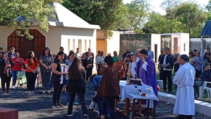Todos los años, la cruz mayor más antigua es el lugar elegido para esta celebración que reúne a fieles habituales de la antes mencionada parroquia pero además a vecinos que se encuentran visitando a sus familiares en el Cementerio “La Piedad”.