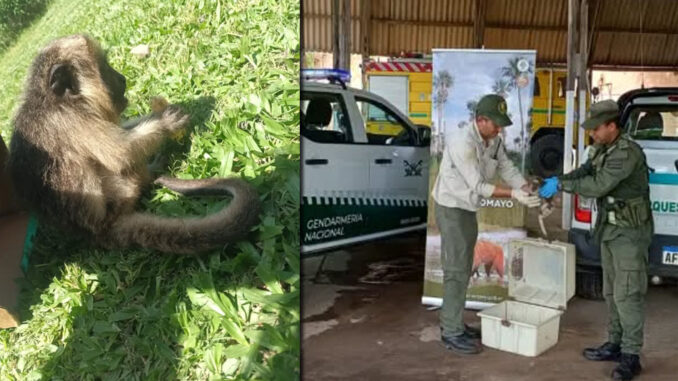 Personal dependiente del Escuadrón 16 «Clorinda» desplegado en el puesto de control «Gendarme Fermín Rolón» sobre la Ruta Nacional N° 11, kilómetro 1.285 visualizó la presencia de un ejemplar de mono de la especie «Carayá» (Alouatta Caraya) que deambulaba en la vía pública.