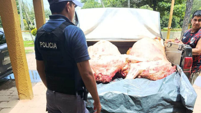En horas de la mañana del día de ayer personal del Destacamento Villa Lucero que realizaba patrullaje preventivo por zona rural advirtió que en una finca se realizaba la faena de animales vacunos sin cumplir con los requisitos legales
