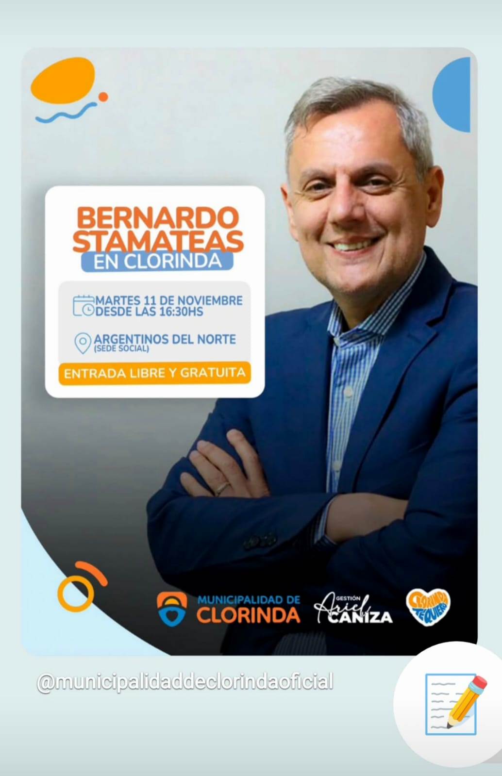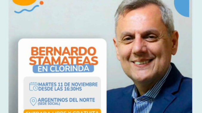 Se trata de una persona muy reconocida en el ámbito nacional e internacional que visitara la ciudad de Clorinda el próximo martes 11 de noviembre, se trata de Bernardo Stamateas, quien es doctor en Psicología, sexólogo clínico, destacado escritor y conferencista nacional e internacional, que mediante las gestiones llevadas adelante por parte del Intendente Ariel Caniza estará presente en la ciudad.