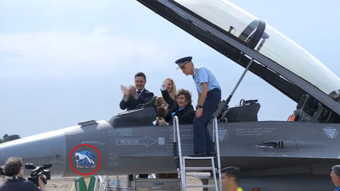 La presentación de los aviones F-16 adquiridos por el Gobierno a Dinamarca en la base cordobesa de Río Cuarto estuvo marcada por un detalle que no pasó inadvertido: uno de los cazas exhibió en su fuselaje un sticker con la imagen de un león en celeste y blanco, símbolo con el que se identifica al presidente Javier Milei.