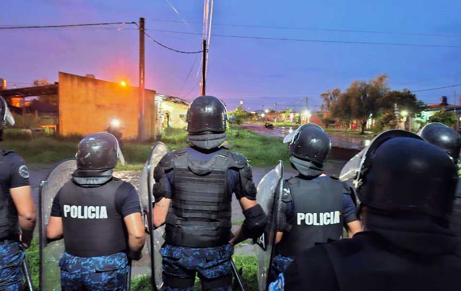 De inmediato, los móviles policiales de las dependencias de la Unidad Regional Uno, Comisaría Seccional Novena, zonas seis y siete del Comando Radioeléctrico Policial, Departamento Informaciones Policiales y Destacamento Desplazamiento Rápido (DDR) actuaron y con un amplio despliegue en la zona, los policías restablecieron el orden realizando disparos disuasivos con postas de goma debido a la hostilidad de los inadaptados, resultando seis efectivos lesionados por el violento ataque con elementos contundentes arrojados por estas personas.