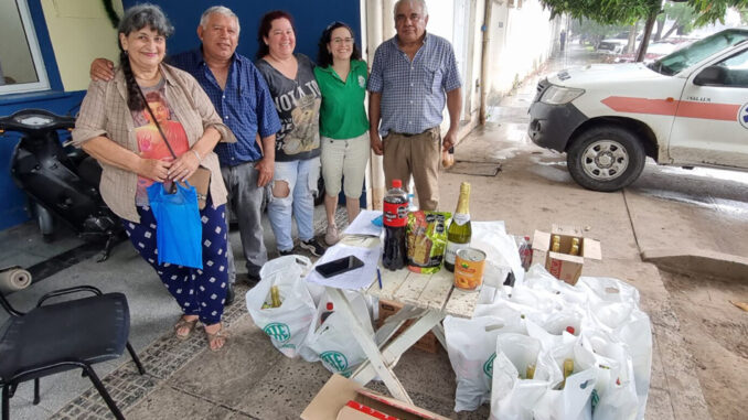 El Secretario General Carlos Villasanti junto al Secretario del interior Néstor Vázquez, Claudia Canteros quien es Secretaria de formación, Paola Barrios Secretaria de Género e Hilda Quintana miembro y referente local del gremio, fueron los encargados de entregar a la gente afiliada que se fue acercando a lo largo de la mañana.