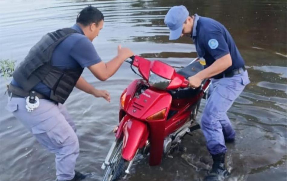 Anoticiados del ilícito, los uniformados analizaron la escena del delito e iniciaron la búsqueda activa del rodado, verificando cámaras de seguridad y redes de inteligencia dando un resultado eficaz, donde se pudo establecer la identidad del autor y seguir las pistas hasta un paso clandestino al país de Paraguay, donde se halló la motocicleta sumergida en las aguas del río, preparada para cruzar la frontera en forma clandestina.