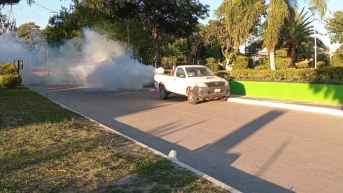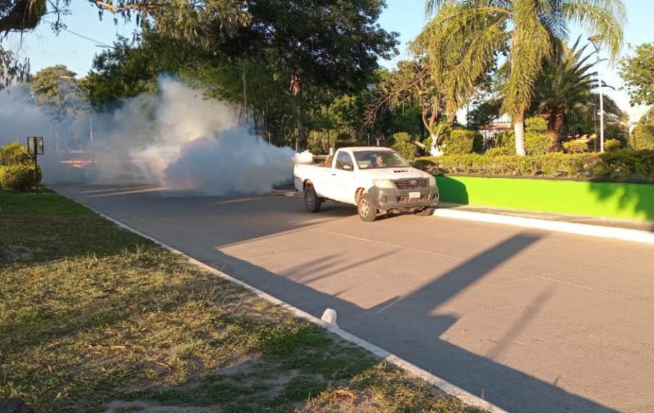 Las acciones incluyen fumigación con moto-mochila, termo niebla pesada y espacial, además de la entrega de repelentes a los transeúntes.