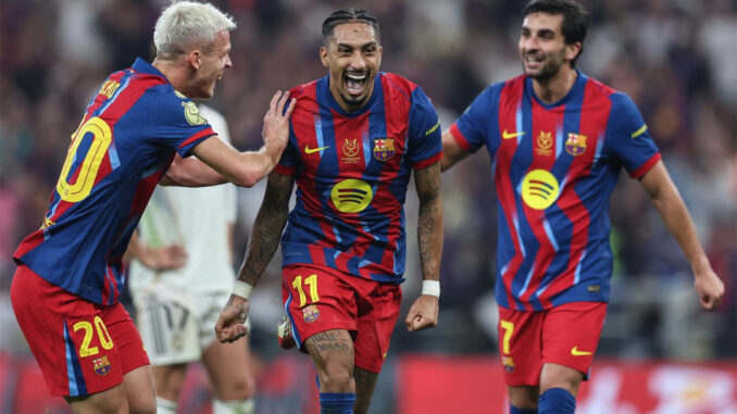 BARCELONA es el campeón de la Supercopa de España tras vencer a Real Madrid por 3-2 en el King Abdullah Sports City de Yeda, en Arabia Saudita, con Raphinha como la gran figura en un partido de locos.