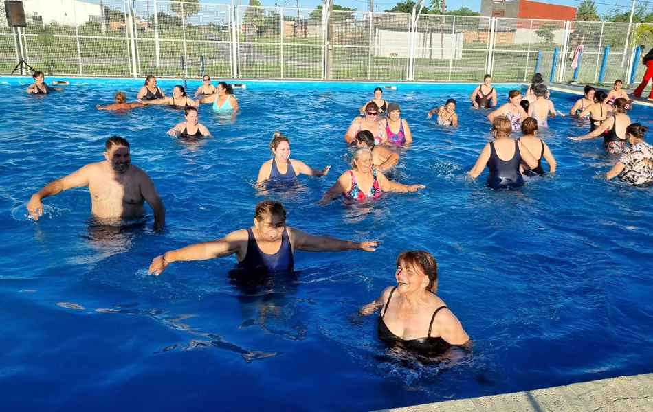Se cumplió la segunda jornada de actividades de aquagym llevada adelante por la Municipalidad de Clorinda a través del programa Somos y el acompañamiento de la dirección de Deportes. Este jueves por la mañana se estuvo cumpliendo con el segundo encuentro que reunió a casi medio centenar de personas de distintas edades para aprovechar esta posibilidad de hacer actividad física especial en este caso en pileta y con el acompañamiento de un profesor que en este caso es Ariel Villalba.
