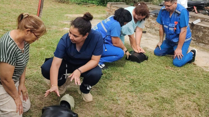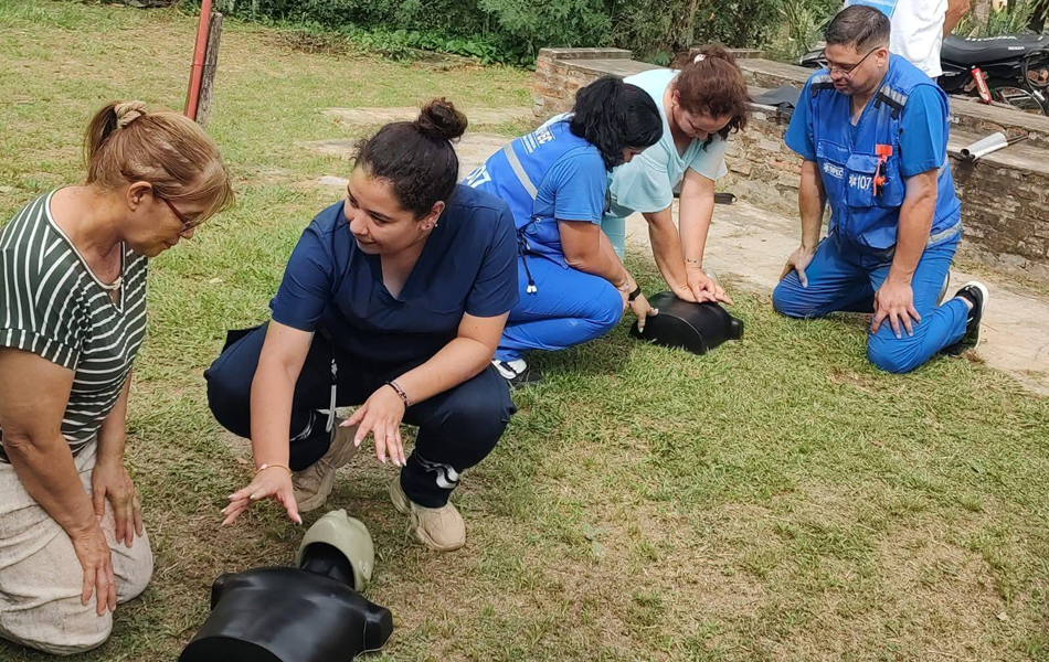 El personal de Docencia e Investigación del SIPEC – Hospital Clorinda, bajo la dirección de la Dra. María Bernardita Obst, realizó una charla teórico-práctica de Primeros Auxilios en la biblioteca del barrio Porteño Norte, con una gran participación de la comunidad.