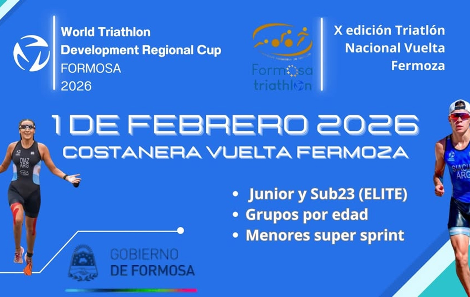 La Vuelta Formosa también tendrá un fuerte componente internacional. En el marco del certamen, se disputará la Copa Regional de Desarrollo World Triathlon – Formosa 2026, destinada a atletas Junior, Sub23 Elite y Elite que se encuentren ubicados más allá del puesto 250 del Ranking Mundial.