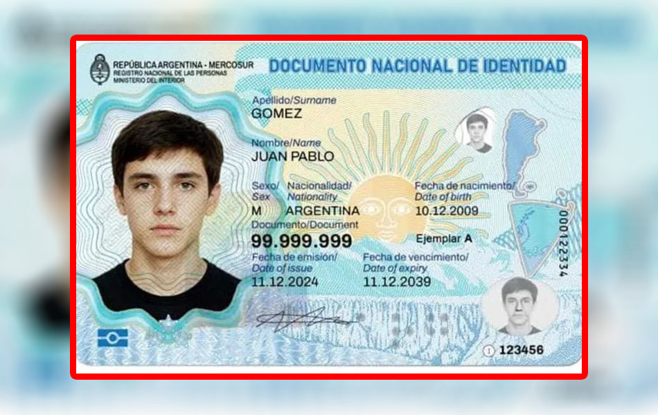 El nuevo DNI electrónico será una tarjeta de policarbonato multicapa, con grabados láser, impresión por chorro de tinta y un chip sin contacto. Este diseño mejora la durabilidad y protege los datos biométricos del titular. Para ciudadanos argentinos mayores de 14 años, el documento incluirá el escudo nacional, la inscripción «República Argentina – Mercosur», la leyenda «Documento Nacional de Identidad», una fotografía a color y datos personales como nombre, apellido, sexo, número de DNI, fecha de nacimiento y firma.