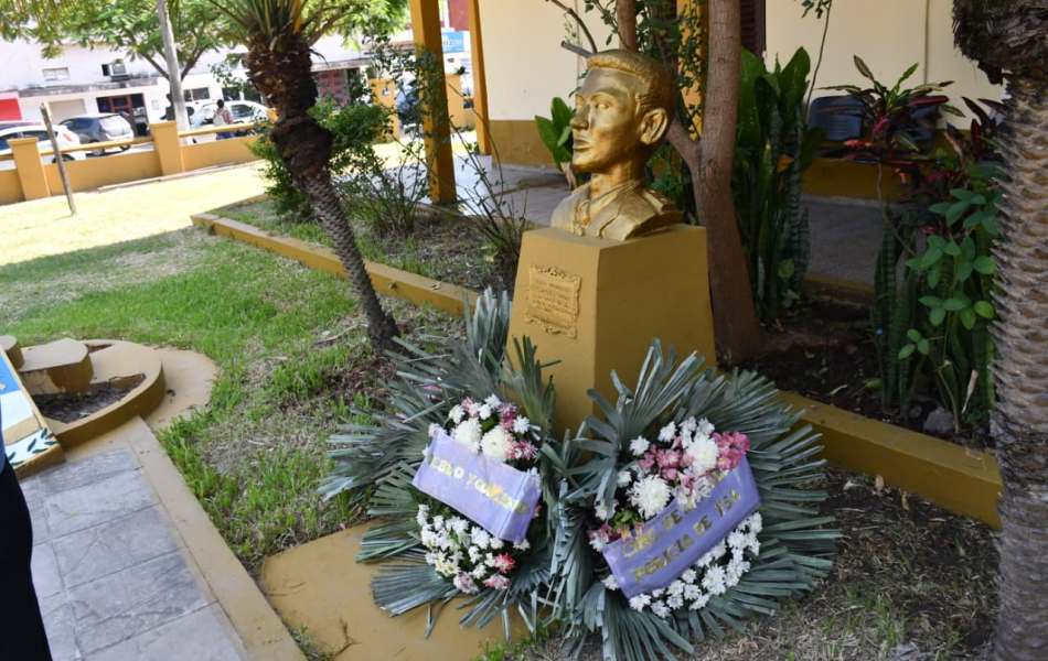 Las autoridades realizaron el depósito de ofrenda floral frente al monolito que perpetúa la memoria del oficial caído en cumplimiento del deber, ubicado en la comisaría que lleva su nombre.